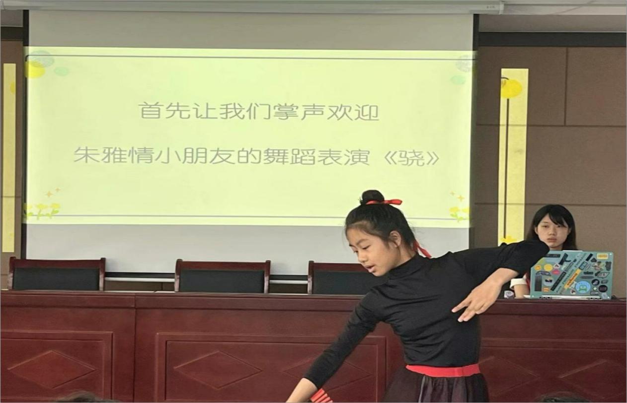 口腔健康檢查結束后,志愿者們為小朋友們準備了一些愉悅身心的小游戲。志愿者們號召小朋友們一起參加了猜歌游戲,進一步拉近志愿者與小朋友們之間的距離。小朋友們踴躍參與并在志愿者的鼓勵下向大家演唱熟練曲目,甚至引起全體合唱,現場氣氛活躍。隨后,幾名小朋友上臺展示《驍》、《只此青綠》、《勇氣大爆發》等舞蹈,有復雜且令人眼前一亮的舞蹈技巧,有溫文爾雅惟妙惟肖的舞姿,也有活潑可愛的少年意氣……小朋友們積極上臺表演,毫不怯場,盡情展示自己的才藝,展現出無比的勇氣和自信。這些活動在調動小朋友們參與的積極性的同時,也鍛煉了他們的身體協調能力。