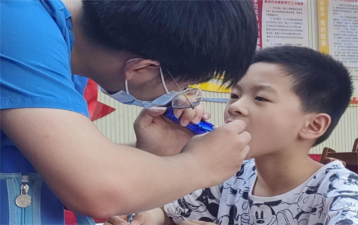 口腔健康宣講活動結束后,兩名牙醫為小朋友們做了口腔健康檢查。他們佩戴好手套,仔細檢查每個小朋友的牙齒和口腔狀況,并針對個別問題給予口腔保健建議。這一環節中,兩名牙醫不僅及時發現了小朋友們的口腔問題,也針對他們的口腔問題提出了解決辦法,可以更好地維護小朋友們的口腔健康。