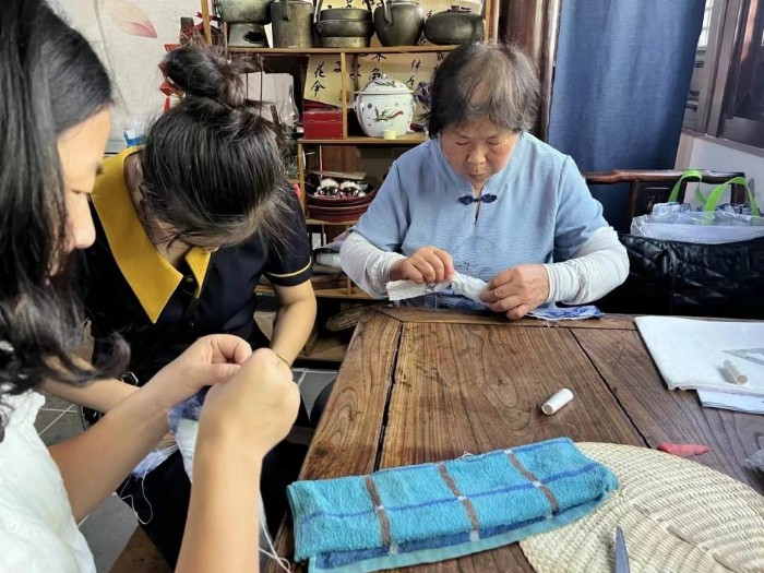 圖為團隊成員協助“大先生”議事堂舉辦扎染活動。姚亞娟 供圖