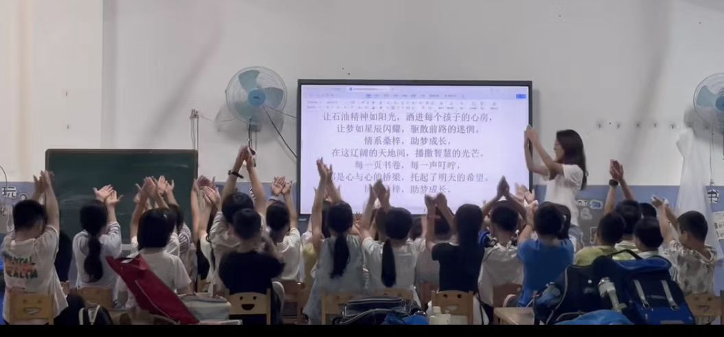 音樂課上,耿可欣老師帶來了兩首特殊的歌曲。一首是中國石油大學(華東)的校歌,讓孩子們在歌聲中感受大學的文化底蘊;另一首則是專為蜀光支教隊創作的《情系桑梓,助夢成長》,悠揚的旋律搭配溫暖的歌詞,唱出了支教老師與孩子們的深厚情誼。孩子們認真跟唱,歌聲稚嫩卻充滿力量,為文藝匯演增添了別樣的溫情。
