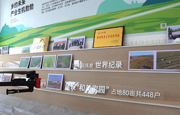 團(tuán)隊(duì)最后一站來到村農(nóng)業(yè)成果展廳。展臺(tái)上,該地的各色農(nóng)產(chǎn)品琳瑯滿目,呈現(xiàn)了村莊多元發(fā)展的產(chǎn)業(yè)格局。在這里,團(tuán)隊(duì)獲悉了四角嶺村載入史冊的輝煌一頁——2016年,袁隆平院士親臨指導(dǎo)水稻試驗(yàn),成功創(chuàng)下畝產(chǎn)1013.8公斤的世界高緯度地區(qū)糧食單產(chǎn)紀(jì)錄。這一里程碑不僅是村莊的榮耀,更是科技力量在糧食安全領(lǐng)域的有力背書,為村莊特色農(nóng)產(chǎn)品的培育和發(fā)展奠定了堅(jiān)實(shí)的科技基礎(chǔ)。