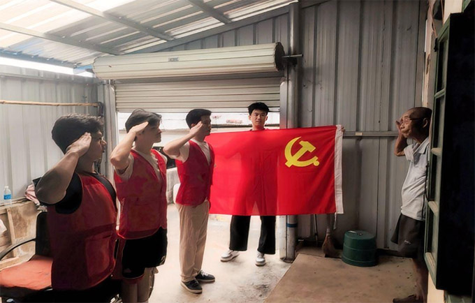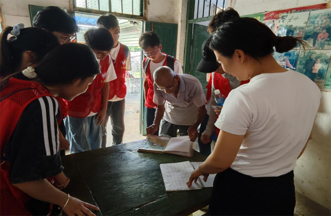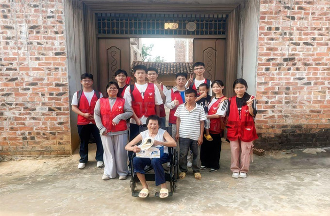 活動(dòng)準(zhǔn)備期間,團(tuán)隊(duì)隊(duì)長(zhǎng)梁積賀積極聯(lián)絡(luò)南寧市武鳴區(qū)政府,在政府支持協(xié)調(diào)下,順利與雙橋鎮(zhèn)下淥村村委對(duì)接,為活動(dòng)開展筑牢基礎(chǔ)。活動(dòng)當(dāng)日,烈日炎炎,隊(duì)員們額間掛著汗珠,卻步伐堅(jiān)定,懷揣對(duì)退伍老兵的敬意與慰問(wèn),赴兩位爺爺?shù)?ldquo;紅色之約”。