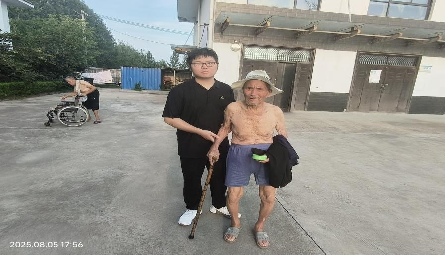 位于城區的宿遷市王官集鎮敬老院設施完善,但老人們的精神世界往往渴望更深度的交流。他的服務對象是一位曾是歷史教師的李爺爺。仝同學提前做足功課,帶著歷史書籍和老照片復制品,與李爺爺共同回顧那段激蕩的歲月。從三國鼎立到近代風云,一老一少相談甚歡,養老院的涼亭成了他們的“第二課堂”。