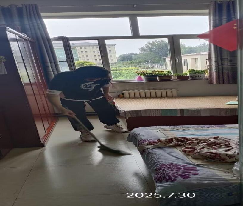 二、汗水與交流:宋同學在寶坻區光榮養老院的精神領悟進入養老院,見到綠植環繞的涼亭和三層樓的設施,后院有健身器材。我隨護理人員到老人房間,發現是兩人間但只住一位。護理人員離開后,我便開始打掃。完成后與老人聊天,老人雖腿腳不便,但堅持自己走動。護理人員提到入住率不高,部分原因是老人更喜歡家庭環境,擔心失去生活節奏和歸屬感,同時經濟負擔也是一個因素。離開時,老人希望我常來聊天,讓我意識到老人更需要情感關懷。這次經歷讓我明白,敬老不僅是照料,還要維護他們的尊嚴和情感需求,讓養老院成為有溫度的精神家園。