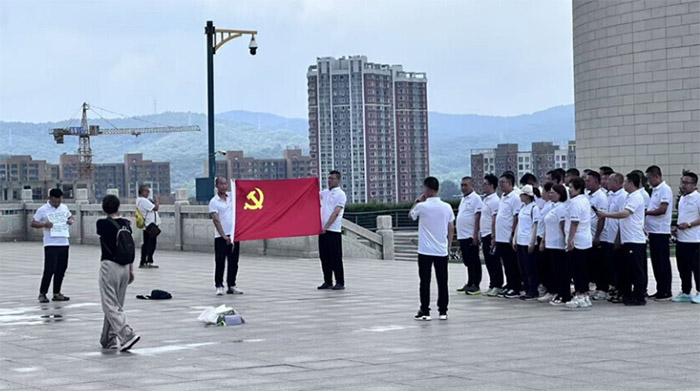 參觀臨近結束,隊伍回到抗美援朝紀念碑廣場,正中央鮮紅的黨旗突然映入眼簾——一群身著白襯衫的年輕人整齊排列成方形,面對黨旗、肅然端正,聲音鏗鏘:“我志愿加入中國共產黨……”風把誓詞一句句送到耳邊,也吹紅了隊員們的眼眶。