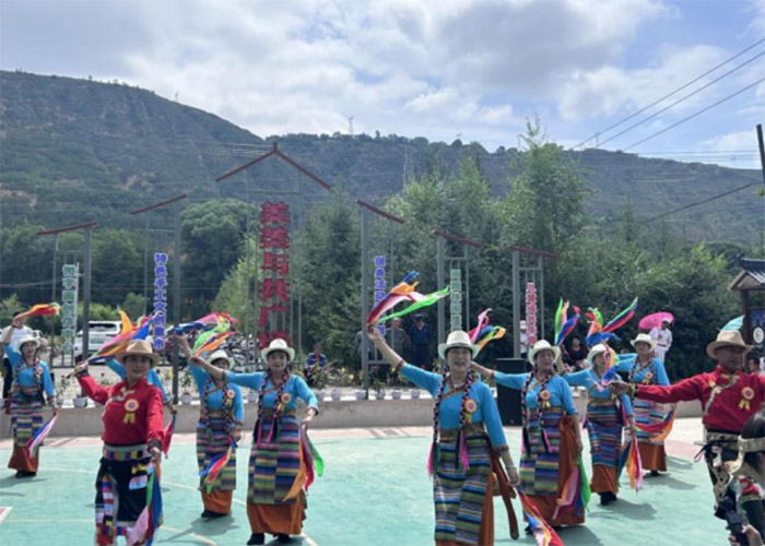 實踐的腳步并未止于水渠。次日晨光初綻,天邊還染著一層淡淡的橘粉,實踐團便踏著微涼的晨風奔赴八里鋪鎮文化廣場。遠遠望去,廣場上已是一片熱鬧景象:震天的鑼鼓聲從紅綢搭建的舞臺兩側迸發,敲得人心頭陣陣發燙;數十條火紅的綢帶在晨風中飛揚,如同跳動的火焰;農婦們身著靛藍布衫,腰間系著繡花圍裙,邁著矯健的步伐甩動腰鼓,鼓點與腳步整齊劃一,臉上的汗珠在晨光下閃著晶瑩的光;一旁教師隊伍的舞步鏗鏘有力,每一個轉身、每一次抬手都透著蓬勃朝氣;藏格拉民族團隊則圍坐成圈,悠揚的和聲隨著風飄向遠方,藏語歌詞里滿是對生活的贊頌。這些聲音與身影交織在一起,共同織就了一幅黃土地上最鮮活、最生機勃勃的文化圖景。頒獎儀式上,獲獎隊員那雙布滿裂口、沾著泥土的雙手接過證書時微微顫抖,而臉上綻放的笑容卻比陽光還要燦爛;手工藝集市里,剪紙、泥塑、刺繡等攤位前擠滿了游人,此起彼伏的贊嘆聲中,無不述說著鄉土文化的自信與活力。暮色漸濃,成員們圍坐在一起,回味著藏舞傳承人那句“長袖舞的弧度是雪山輪廓”的箴言,指尖仿佛還殘留著紅綢的溫度,心中則反復思考著文化傳承如何與鄉村振興同頻共振,讓那些深植于黃土地的舞步,踏響振興征程的同一個節拍。