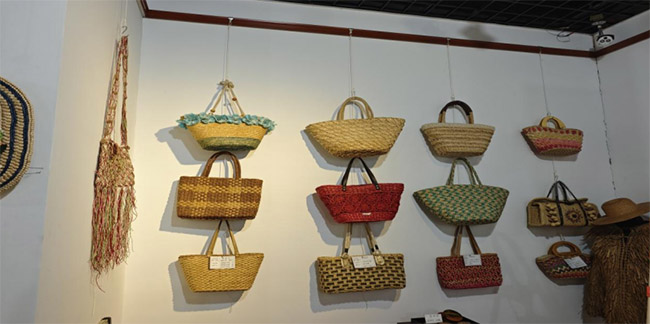 圖為各類草編提包。卞昭棟 供圖