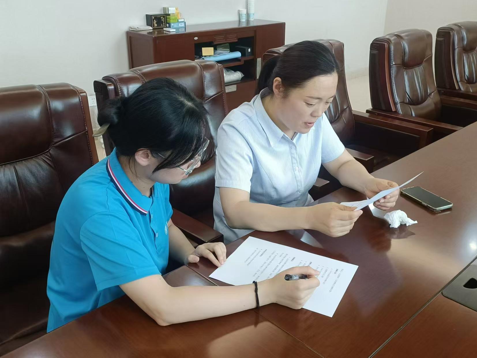 圖為實踐團對華佗國藥廠的人力資源部部長進行訪問。了解企業的招牌計劃、要求等信息。通訊員 邵詣翔 攝