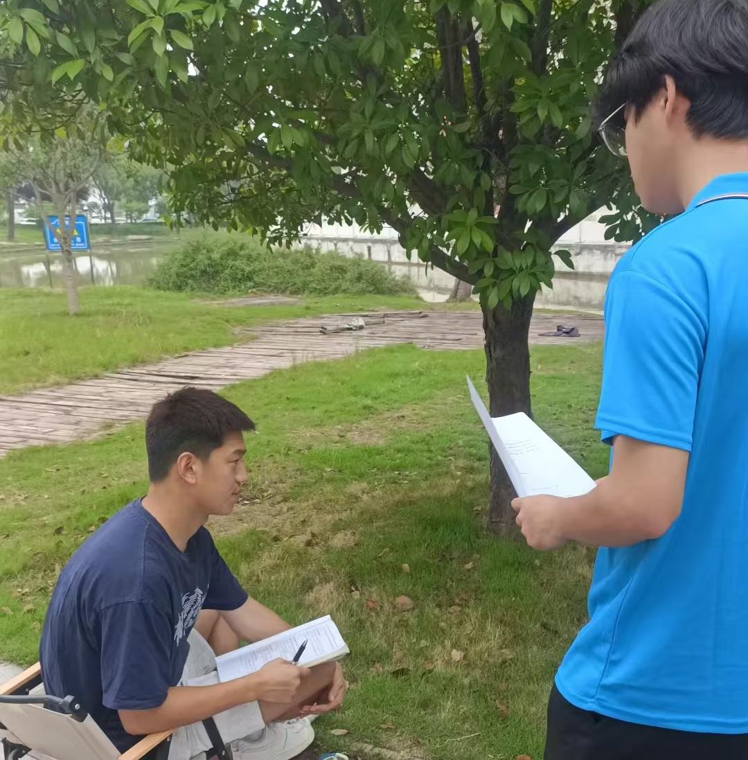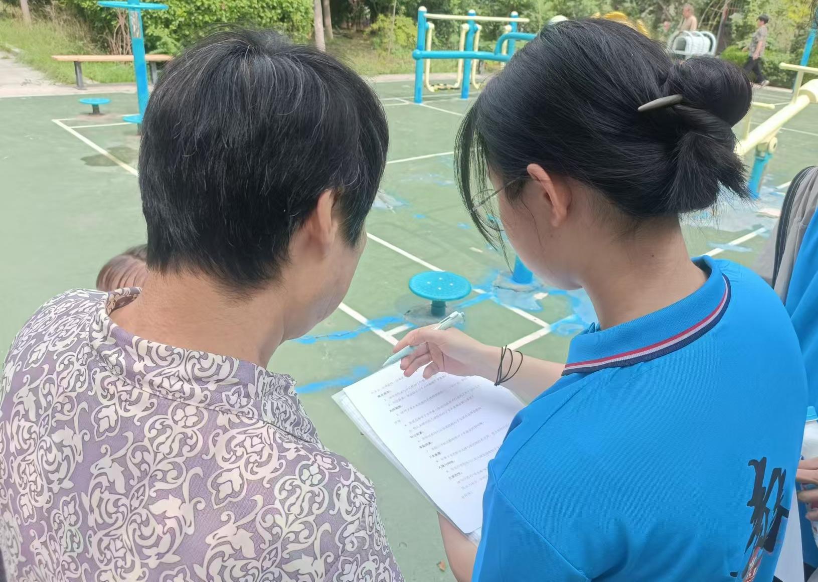 圖為實踐團隊在南湖公園采訪家長對于子女未來就業的期望。 通訊員 邵詣翔 攝