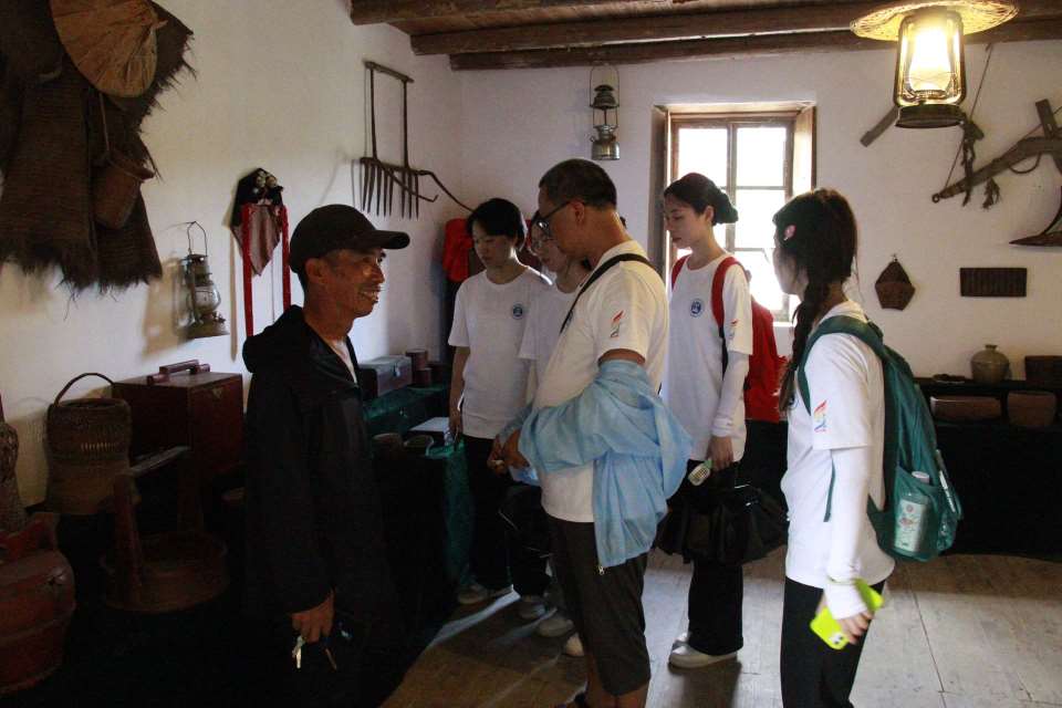 隨后,一行人移步至農耕民俗陳列室,這里仿佛是一個微縮的民俗博物館,梳妝臺、雕花木床等傳統物件靜靜陳列,其上精美的圖案仿佛在訴說著往昔的生活場景與民俗風情。通過村支書邱鳴發的細致介紹,隊員們不僅學習到了爐溪村的嫁娶習俗,更深刻體會到了這片土地上深厚的文化底蘊與生生不息的生命力。