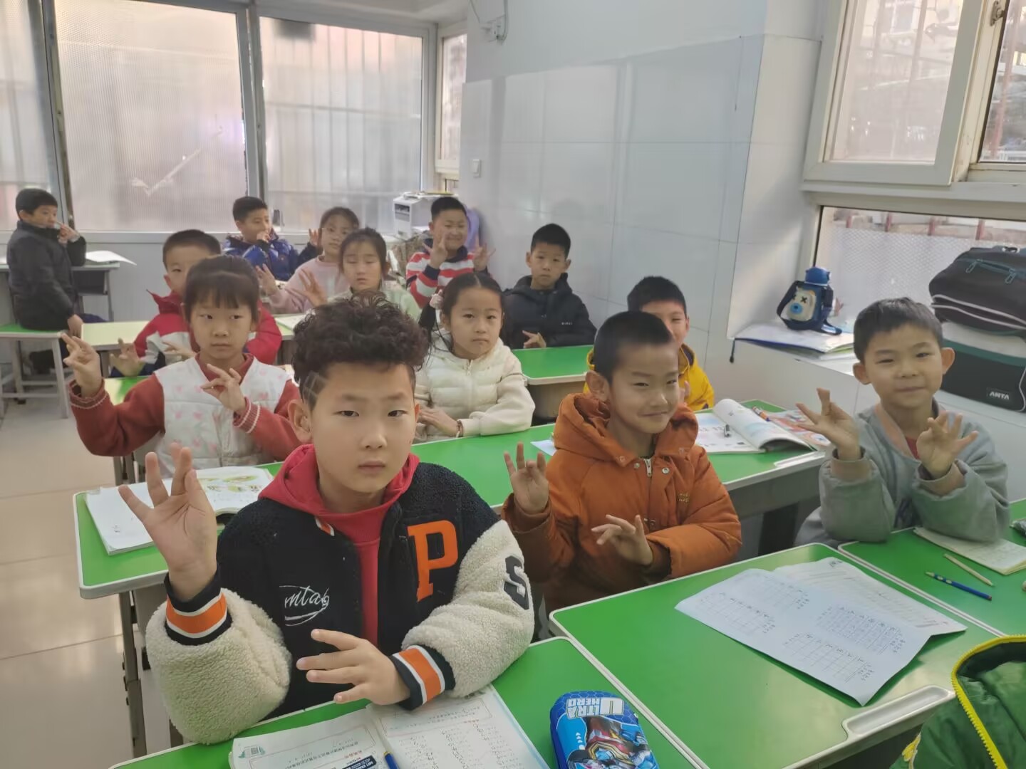 圖為孩子們根據(jù)是實(shí)踐隊(duì)員演示,認(rèn)真學(xué)習(xí)模仿茂腔表演中的手勢(shì)。在學(xué)習(xí)過程中,孩子們不爭(zhēng)不吵、態(tài)度認(rèn)真,展現(xiàn)出對(duì)茂腔這一藝術(shù)形式的濃厚興趣。張昕 供圖