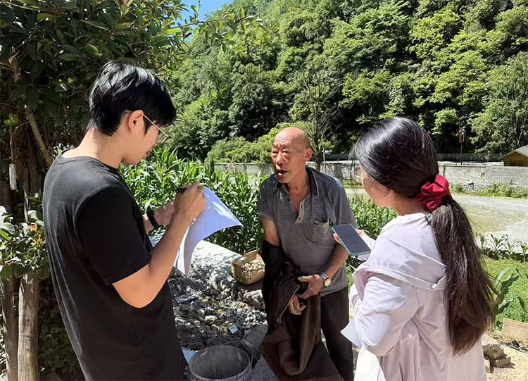 2025年7月8日,來自華中農業大學的園藝林學學院赴湖北襄陽堯治河村實踐隊實地展開調研,對村民現狀進行調查。