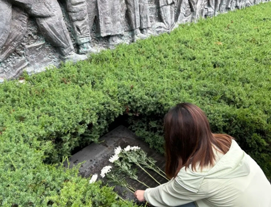 圖為團隊成員在給南京大屠殺遇難同胞們獻花。