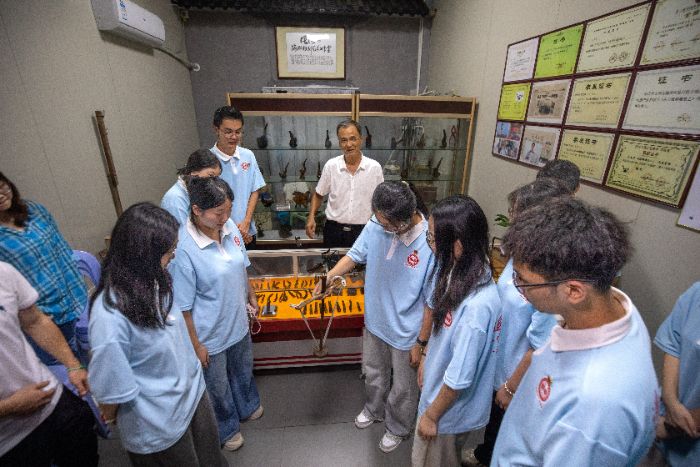 體驗結束,隊員們采訪了非遺傳承人,詢問非遺傳承歷程、面臨挑戰及創新探索。傳承人的分享,讓隊員們加深了對非遺保護重要性的認識,也對習近平總書記在文化傳承發展座談會上重要講話精神的實踐意義有了更深刻理解。