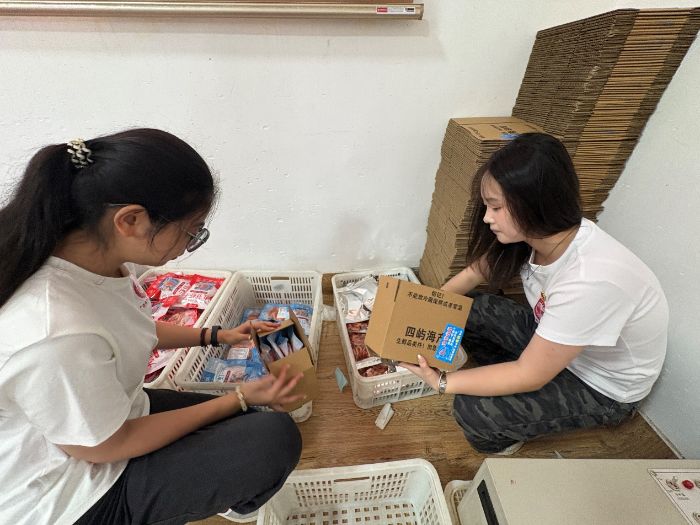 圖6 實踐隊員實地體驗電商產品包裝貼單