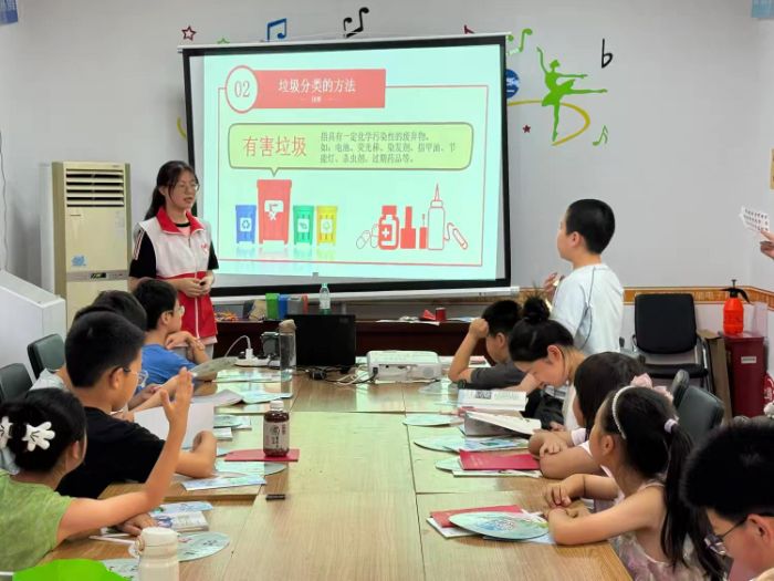 環保理念,是引領青少年走向綠色未來的行動指南。“垃圾分類科普”活動中,實踐團通過展板、視頻等形式,詳細講解垃圾分類的重要性、四分法、投放方法以及臭氧的作用與保護方式??粗⒆觽冋J真聆聽,積極提問,對環保知識有了更深入的了解,我們相信環保理念已在他們心中扎根,他們將成為環保的倡導者和踐行者,為社區的綠色發展貢獻青春力量。