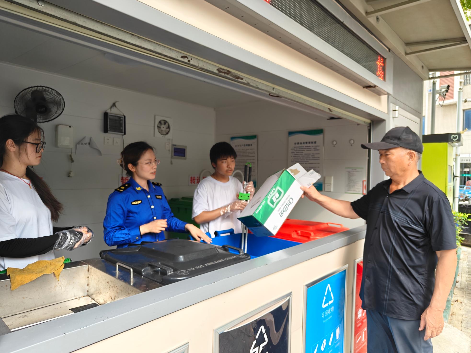 此外,團隊成員還深入居民家中,與居民面對面交流,詳細講解垃圾分類的具體方法和注意事項。“大媽,您看這個廢舊電池屬于有害垃圾,要放進專門的回收箱里,不能和其他垃圾混在一起。”在小區清潔小屋,團隊成員親身體驗了分類工作,他們戴上手套,將居民投放的垃圾進行仔細分類,并引導居民正確投放。“以前總覺得垃圾分類很麻煩,經過你們的講解和示范,我現在知道該怎么分了,以后一定會做好。”一位居民說道。?