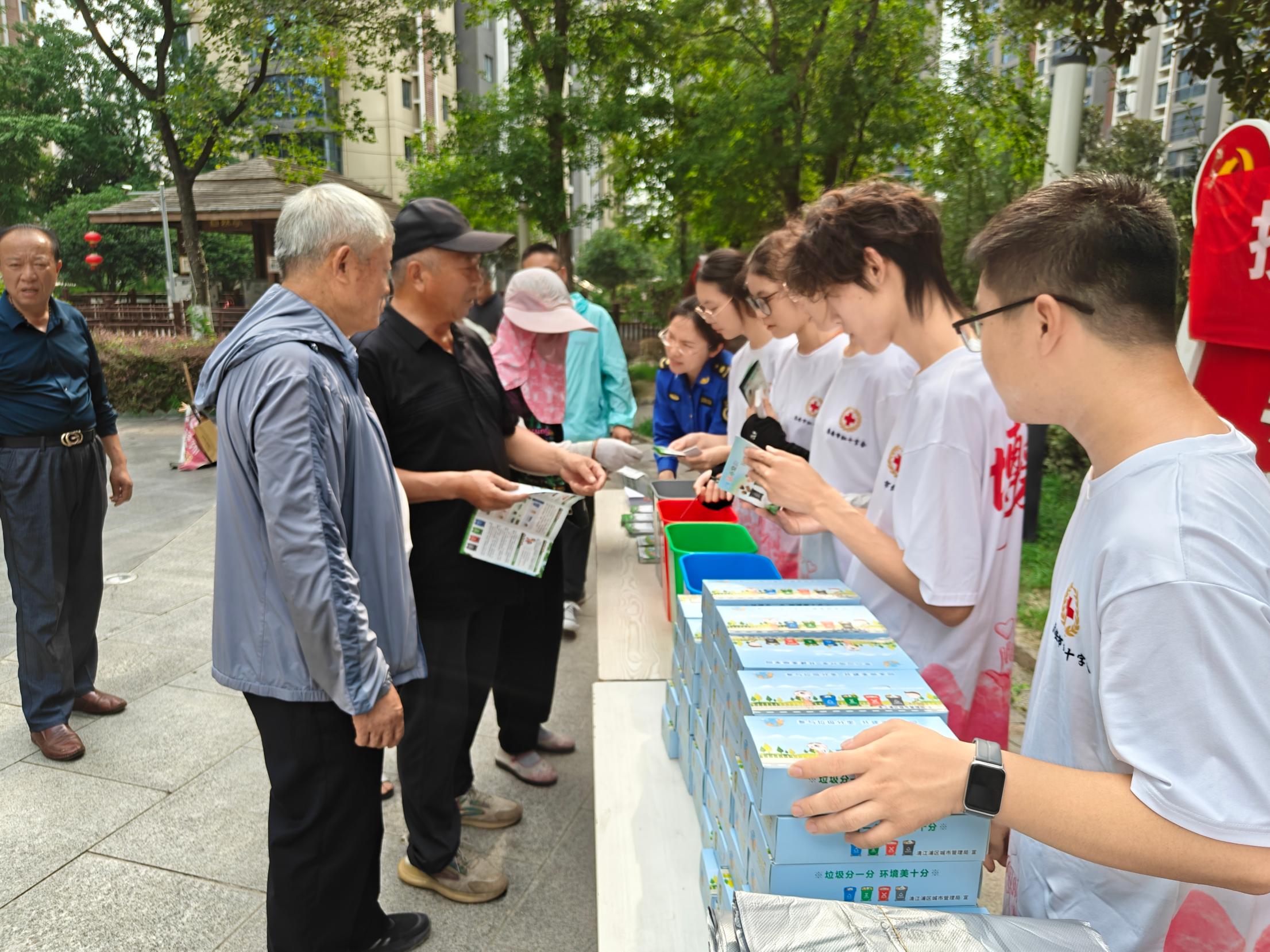 為了增強市民的環保和垃圾分類意識,7月15日,團隊聯合清江浦區城管局在清江浦街道海潤楓景小區開展“攜手分類垃圾 共建美麗家園”垃圾分類宣傳進小區活動。活動現場,團隊成員通過設立宣傳展板、發放宣傳手冊等方式,向居民普及垃圾分類知識。在互動提問環節,居民們積極參與,對于大家的疑問,團隊成員都耐心解答。為了提高居民的參與積極性,團隊還準備了生活用品作為獎品,答對問題的居民都領到了心儀的獎品。?