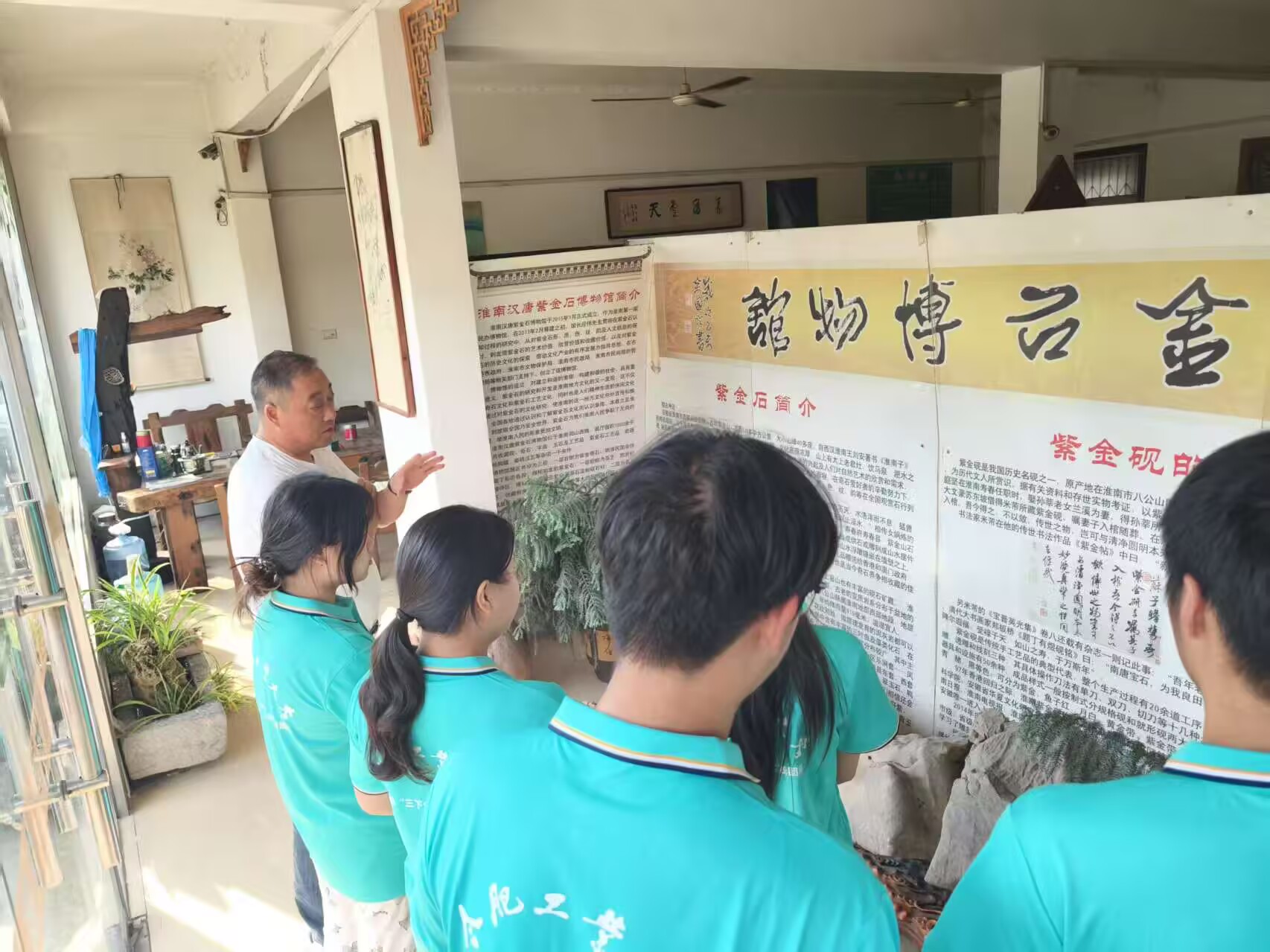 溯源文脈:博物館中聆聽千年回響 7月7日下午,團(tuán)隊在淮南漢唐紫金石博物館館長應(yīng)偉的引領(lǐng)下,開啟了一場穿越時空的文化之旅。步入展廳,琳瑯滿目的紫金石硯,從古樸漢風(fēng)到雅致唐宋,無聲訴說著歷史變遷。應(yīng)館長引導(dǎo)學(xué)子們細(xì)辨硯臺的獨特石質(zhì)——“質(zhì)堅而潤,色紫而雅”,解讀其背后蘊含的文化密碼與歷史故事。