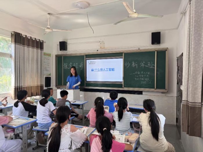 作為機器人工程專業的學生,團隊成員利用專業優勢,為當地學生開展了一系列科普小課堂。成員們以人工智能發展史為切入點,深入淺出地講解AI賦能知識;借助智能小車模型,形象展示機械構造與智能原理,引導孩子們在互動實踐中觸摸科技、探索未知;課堂上,孩子們踴躍參與互動小游戲,對科技的好奇與探索欲被充分激發。