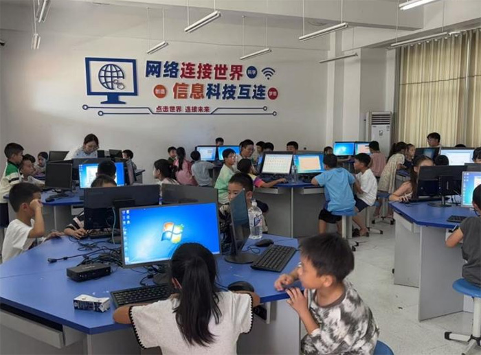 光明社區暑托班的編程課堂如期開展,成都外國語學院育智飛揚光明啟航實踐隊為光明社區暑托班的孩子帶來了一場趣味編程體驗。課前,實踐隊隊員們已提前調試好電腦和編程教具,并根據孩子們的認知水平,將課程內容拆解為幾個基礎環節。隊員們用生動有趣的方式給孩子們講編程知識時,教室里立刻滿是好奇與興奮。孩子們從學簡單指令到慢慢搭起完整的編程小項目,在代碼世界里探索嘗試:他們專注地盯著屏幕,小手在鍵盤上小心敲擊,每完成一個小任務,臉上都掛著自豪的笑。這門課不僅鍛煉了孩子們的邏輯思維,更點燃了他們對科技的熱情,讓他們在實踐中感受創新的樂趣。期間,實踐隊員們巡回指導,對操作不熟練的孩子俯身教演示,對遇到邏輯問題的孩子則用提問引導思考。