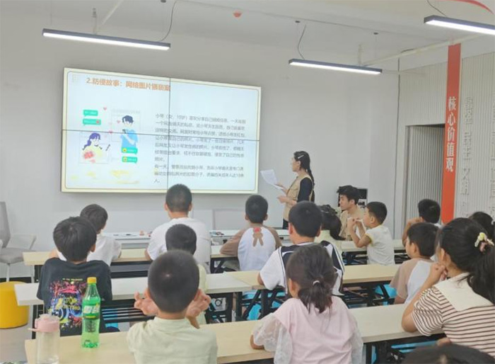 為切實保障暑托班兒童的身心健康,提升自我保護意識與能力,實踐隊精心組織開展了“防性侵課堂主題活動”。通過生動有趣的互動教學,為孩子們帶來了一堂意義深遠的安全教育課。課程以趣味問答環節作為切入點,激勵孩子們主動加入討論,聯系生活中的實際情況,為孩子們解答關于自我保護的疑惑。以通俗易懂的概念引導樹立隱私意識,講解青春期知識,科普性侵害的類型、危害,強調無論何時都要勇敢對不安全行為說“不”。借助課程的實施,進一步提升社區、家庭與學校對兒童安全保護的重視程度,多方攜手為孩子們營造安全健康的成長環境。