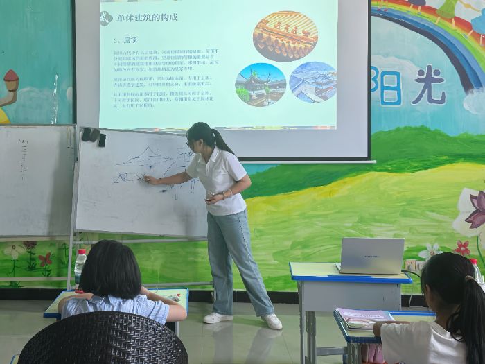 圖 3 團隊成員陶嘉琳為孩子們講解不同建筑類型 張茹攝
