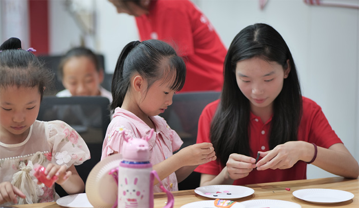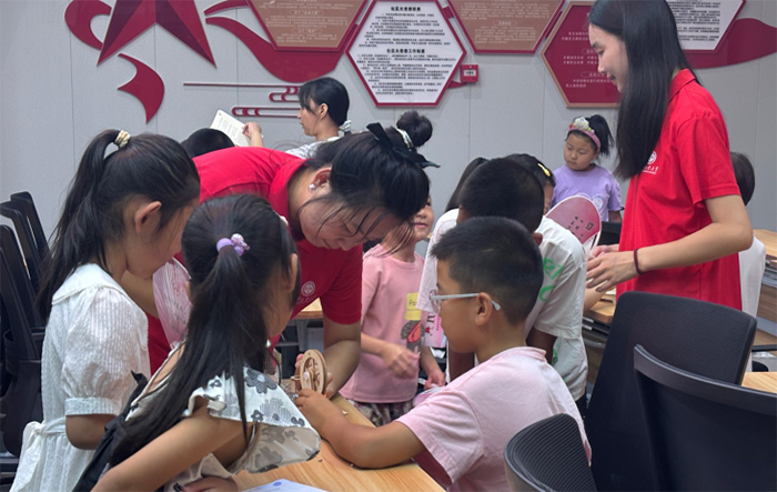 隨后,實踐隊聚焦中華傳統文化瑰寶——二十四節氣,通過教唱兒歌幫助小朋友們記憶節氣。在歡快的歌聲中,隊員們結合圖片和語言,介紹了節氣對應的自然現象和傳統習俗,讓青少年在韻律與故事中感受古人的智慧和傳統文化的魅力,將時間知識轉化為具象的生活場景。