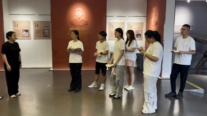 紅色基因與非遺文化的傳承創(chuàng)新實(shí)踐團(tuán)隊(duì)首站來到被譽(yù)為“沂蒙精神重要發(fā)源地”的朱村。在莊嚴(yán)肅穆的朱村抗日戰(zhàn)斗紀(jì)念館,團(tuán)隊(duì)成員認(rèn)真聆聽講解員講述浴血奮戰(zhàn)的英雄事跡,透過一件件斑駁的武器、一封封泛黃的家書、一幅幅珍貴的歷史照片,那段烽火歲月仿佛重現(xiàn)眼前,讓實(shí)踐團(tuán)隊(duì)成員更感和平的來之不易。