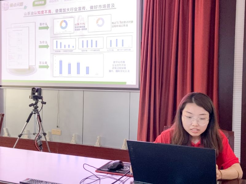 在互動環(huán)節(jié),團(tuán)隊成員圍繞茶油產(chǎn)業(yè)與鄉(xiāng)村振興等關(guān)鍵問題向在場的農(nóng)技站、茶葉站、產(chǎn)業(yè)股等部門的專家進(jìn)行了深入交流并得到了積極且詳盡的答復(fù)。團(tuán)隊成員了解到尤溪縣在農(nóng)村農(nóng)業(yè)生產(chǎn)中加強(qiáng)三產(chǎn)融合,實(shí)現(xiàn)農(nóng)產(chǎn)品從種植到加工到銷售的整體把控;在農(nóng)村環(huán)境整治中堅持“宜居宜業(yè)”發(fā)展,推行以農(nóng)村廁所革命、污水治理、人畜環(huán)境整治等為主要立足點(diǎn)的農(nóng)村環(huán)境措施;在文化推廣中將傳統(tǒng)文化融入品牌打造,推出“沈郎鄉(xiāng)”等特色農(nóng)業(yè)文化品牌。但當(dāng)?shù)匾踩匀淮嬖谥掠纹髽I(yè)難以保證上游品控、本地小微企業(yè)發(fā)展困難、特色品牌推廣效果較差、道地藥材發(fā)掘程度不足等問題。團(tuán)隊成員將著眼于這些問題,利用尤溪縣農(nóng)業(yè)農(nóng)村優(yōu)勢,結(jié)合自身所學(xué)知識,為當(dāng)?shù)剜l(xiāng)村的全方位發(fā)展貢獻(xiàn)力量。