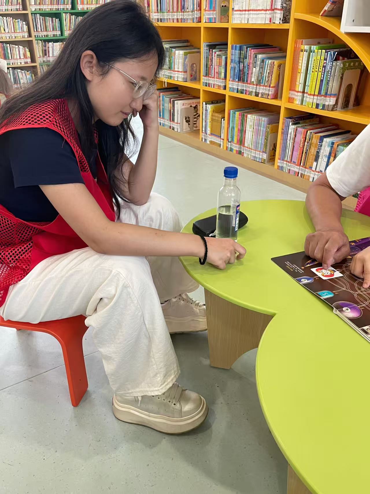 圖為實踐團成員為小朋友尋找書籍通訊員 閆子璇 供圖在少兒閱讀區(qū),實踐團成員化身“閱讀引路人”。面對小朋友們五花八門的閱讀需求,他們耐心詢問喜好,穿梭于書架間,為孩子找到適配的繪本與故事書。“姐姐,我想聽關于太空的故事!” 聽到孩子的請求,實踐團成員迅速在書架中檢索,捧著《宇宙的奧秘》回到孩子身邊,聲情并茂講述,引得小讀者們眼神發(fā)亮,沉浸在奇妙的閱讀世界。這不僅是傳遞知識,更是以青春力量培育祖國未來的希望。