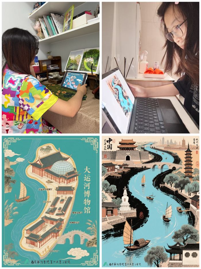 此次暑假,團隊以先前調研資料為抓手,帶著明確的研究目標,分工協作。7月28日至7月30日,通過對運河輿圖、漕運檔案,及文物細節的整合研究,團隊制作了博物館導航圖、運河水脈宣傳海報等宣講材料,力求將散落的歷史碎片整合為脈絡清晰、內涵豐富的運河文化知識體系,為后續運河水脈“活化”傳播打下堅實基礎。