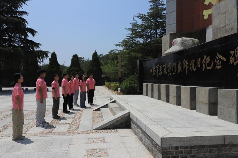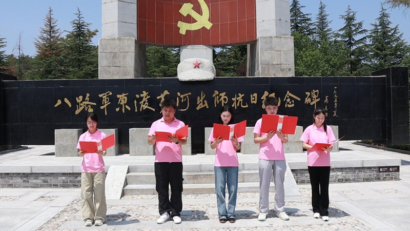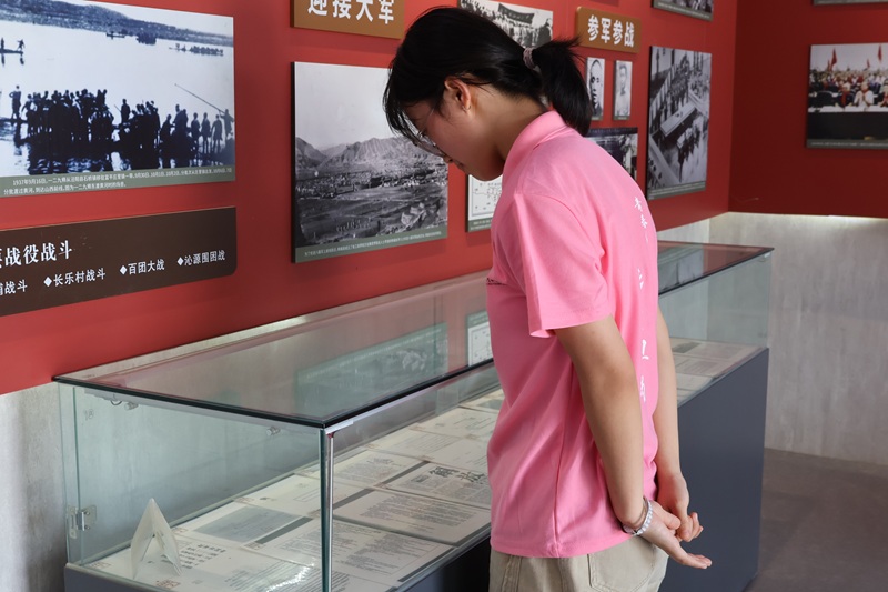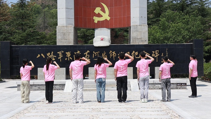 離開紀(jì)念碑,實(shí)踐團(tuán)成員走進(jìn)八路軍東渡黃河城南舊址。斑駁的磚石墻與鮮紅的黨徽交相輝映,珍貴的文物展陳默默訴說著抗戰(zhàn)時期工業(yè)戰(zhàn)線支援前線的磅礴力量,讓大家對那段歷史有了更鮮活的認(rèn)知。