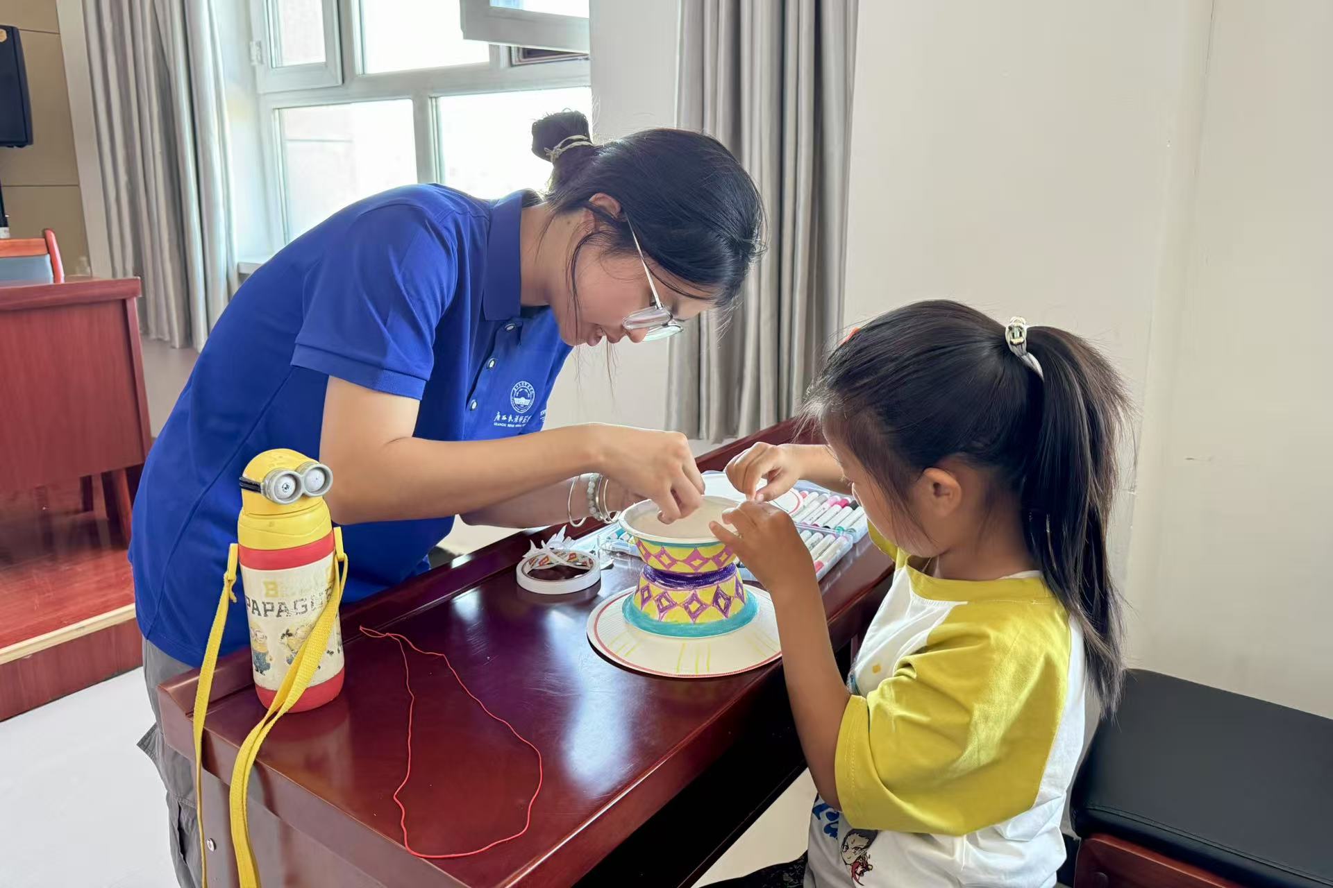 實踐團成員與孩子們共同制作銅鼓模型