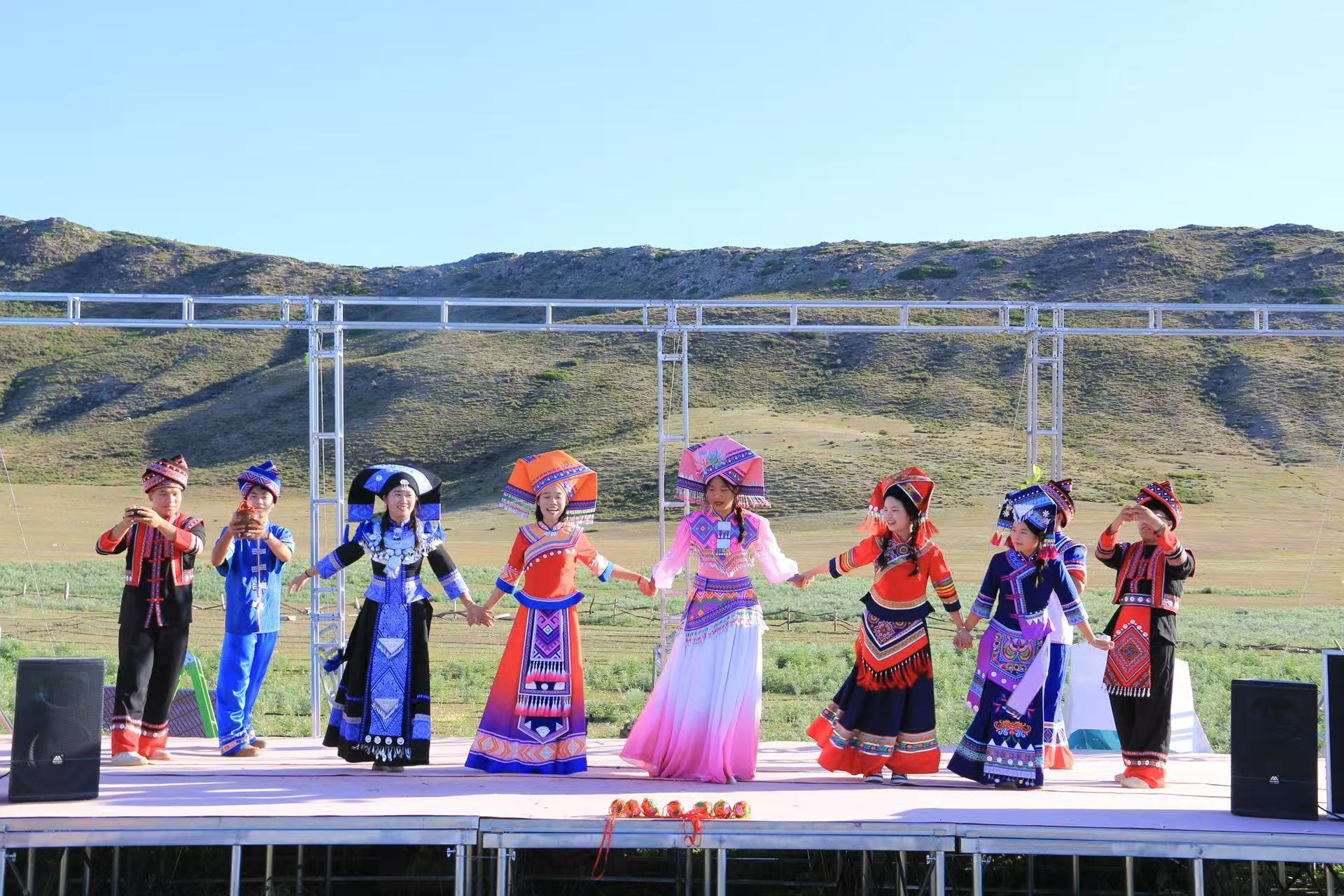 疆桂兩地群眾共跳民族舞蹈、同唱民族歌謠,在互動中加深了對彼此文化的理解?;鹉苋∨栉枘苓B心,這把火照亮的,是共同的文化根脈。正如"中華民族一家親"的情誼,在這片美麗的草原上生生不息。