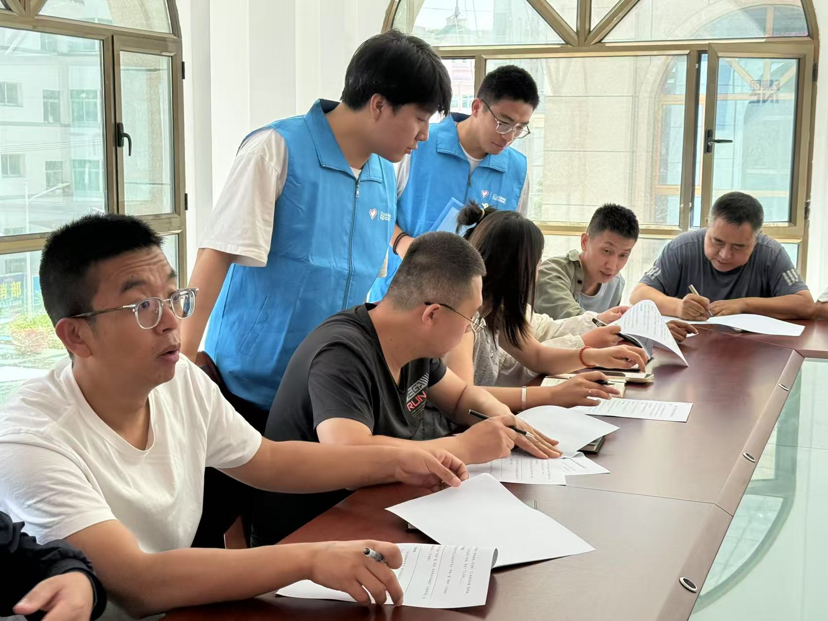 圖為宣講團成員指導社區成員填寫調查問卷。