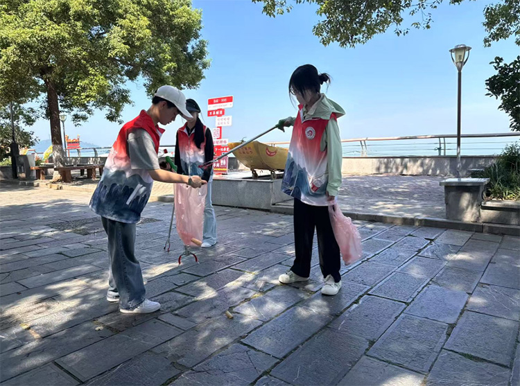 在對淮軍歷史的了解的同時,實踐團(tuán)隊將目光投向巢湖生態(tài)保護(hù)。在巢湖周邊河灘,因部分游客、居民環(huán)保意識不足,塑料瓶、包裝袋、廢紙等垃圾散落,影響灘涂生態(tài)與景觀。 實踐隊員身著統(tǒng)一服裝,攜帶垃圾袋、夾子等工具開展集中清理。大家分工協(xié)作,深入蘆葦叢、石縫等隱蔽區(qū)域撿拾垃圾,對可回收物與其他垃圾進(jìn)行分類收納,烈日下,成員們未作退縮,既以實際行動清掃灘涂垃圾、踐行環(huán)保理念,又同步向周邊游客與居民開展文明旅游宣傳——發(fā)放宣傳手冊、講解生態(tài)保護(hù)知識,引導(dǎo)大家愛護(hù)自然環(huán)境、杜絕隨手丟棄垃圾。不懈努力中,灘涂面貌煥然一新、重顯生機,這場行動既是環(huán)境的清掃,更是青春力量踐行環(huán)保承諾、推動文明旅游的鮮活見證。