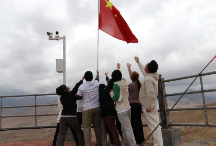 實踐團成員們來到海拔約3300米,高19.99米,刻有中國西極地標塔前,這是一幅雄渾而壯闊的畫卷,卻也充斥著讓人難以想象的艱苦。中國西極以自己獨特的姿態,在祖國的西部版圖上書寫著屬于自己的篇章,這里不僅是地理意義上的“西極”,更是民族團結、邊疆穩定、生態優美、發展進步的生動縮影。當余暉穿透昆侖山脈的積血,灑在這片承載著“中國最后一縷陽光”記憶的土地上時,隊員們肅立在祖國最西陲,“我愛你中國”的吶喊聲響徹蒼穹,包含著對祖國最真摯、最深沉的熱愛。