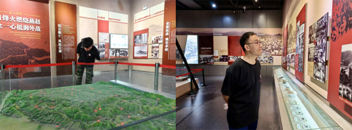 隨后,實踐隊員們走進華北軍區烈士紀念館。館內的陳列無聲卻有力,抗戰時期的印記在每一個角落流轉。墻上靜靜陳列的老照片,有的定格著戰士們奔赴戰場前的堅毅面龐,有的記錄著軍民同心支援前線的溫暖瞬間,照片邊角的褶皺里,藏著歲月磨不去的赤誠。玻璃罩下的一件件舊物品,訴說著不凡的過往:磨得發亮的步槍上還留著硝煙的痕跡,補丁摞補丁的軍裝仿佛能讓人觸摸到穿它的戰士曾有過的體溫,還有那本頁腳卷起的戰地日記,字跡雖已模糊,字里行間的熱血卻依然滾燙。一段段詳實的文字介紹在燈光下泛著微光,隊員們駐足凝視,目光掠過那些關于抗爭、關于堅守、關于犧牲的記述,恍惚間仿佛穿越了時空的阻隔,革命先輩們在戰場上冒著槍林彈雨沖鋒陷陣的身影、在缺衣少食的困境中咬著牙堅持斗爭的模樣、在民族危難之際毫不猶豫挺身而出的決絕,一一在腦海中清晰浮現。
