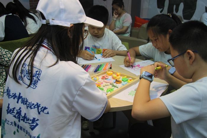 七彩云朵志愿服務隊員引導孩子們繪畫。張可心供圖