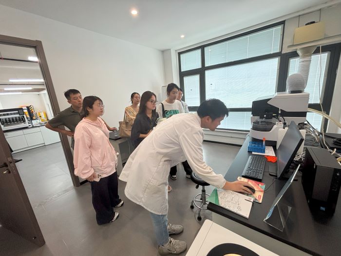 實踐團接著走訪園區企業江蘇普萊醫藥生物技術有限公司和江蘇佰澳達生物科技有限公司,了解企業的核心產品。企業實驗室科研人員向實踐團展示了藥物測量配比的實驗過程。在與企業的深入交流中,“產學研協同”是高頻詞:企業與高校共建實驗室,產業園提供中試平臺,政策解決資金難題,三者合力讓“實驗室成果”到“市場產品”的距離縮短了一半。如佰澳達目前與清華大學、江南大學等院校建立長期穩定科研合作關系。這種“快慢平衡”的創新節奏,讓同學們明白,真正的創業不是“追風口”,而是在“堅守核心”與“靈活應變”中找平衡。