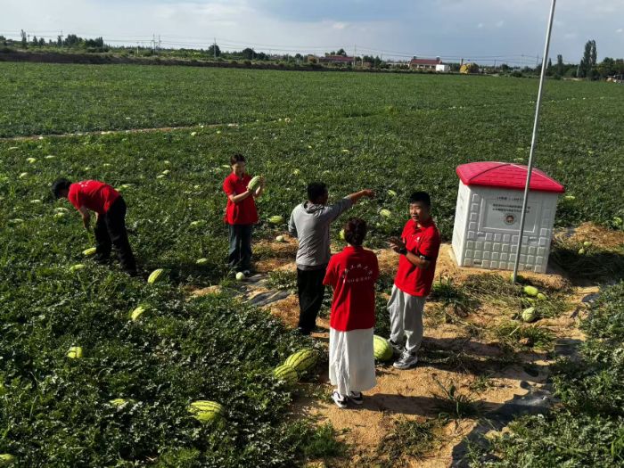 靈武之行中,隊員們深入社區廣場和居民聚集區,通過問卷調查與訪談,聆聽各族群眾互助故事,收集鄉村發展需求,明確基層痛點。調查顯示,群眾對鄉村發展期望迫切,普遍希望改善基礎設施、推動產業升級、加強生態保護。在白芨灘林場,隊員們沿著治沙成果展示區前行,了解了六十年間從“沙進人退”到“綠進沙退”的滄桑巨變,還參與了灌溉管道檢修和林區雜物清理,親身體驗生態保護工作的艱辛與責任。瓜田間的勞作讓隊員們體會到農業生產的不易,深刻理解“產業先行”的重要性。勞作之余,隊員們與當地農戶深入交流,共同探討如何通過科學種植和現代化管理提升農作物產量與質量。通過交流,隊員們深切感受到農戶們對美好生活的向往和對農業發展的熱切期盼,這更加堅定了他們為鄉村振興貢獻青春力量的信念。