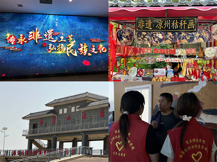 夕陽如熔金般傾灑,實踐團的足跡深深鐫刻在這片承載著三道文明年輪的廣袤土地上。走進民勤防沙治沙紀念館,老治沙人皸裂的掌心輕托著泛黃照片,那麥草方格背后所蘊含的孤勇與堅韌,如重錘般敲擊在青年們的心間。民勤人的治沙精神,是對生存的頑強抗爭,是對生命的激昂禮贊,在歲月長河中熠熠生輝。瑞安堡甕城垛口外,蜜瓜田翠浪翻涌,生機勃勃;紅崖山水庫碧波如鏡,平靜中倒映著人與沙洲從激烈對抗到和諧和解的壯闊史詩,見證著這片土地在苦難中不屈的頑強與浴火重生的新生。當夜幕緩緩垂落武威,一場非遺的星火盛宴絢麗開啟。實踐團踏上精神尋根之旅,與非遺傳承人傾心對話:拜訪秦腔第六代傳人,感受古老藝術那鏗鏘有力的獨特韻律;奔赴武威區,同涼州編織、涼州秸稈畫非遺傳承人促膝長談。剪紙時銀剪翻飛,絲綢古道上的駝影躍然紙上;涼州攻鼓踏碎寂靜,羊皮鼓聲里漢唐血脈奔騰不息;復刻銅奔馬昂首,青銅弧線勾連起絲路的輝煌驕傲。從治沙人栽下的生存之根,到非遺人刻寫的文明密碼,青春化作貫通古今的橋梁,觸摸著生命的史詩。