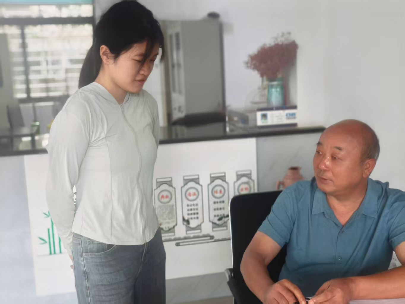 圖為志愿者(其一)與村支書交談畫面。張雯靜 供圖