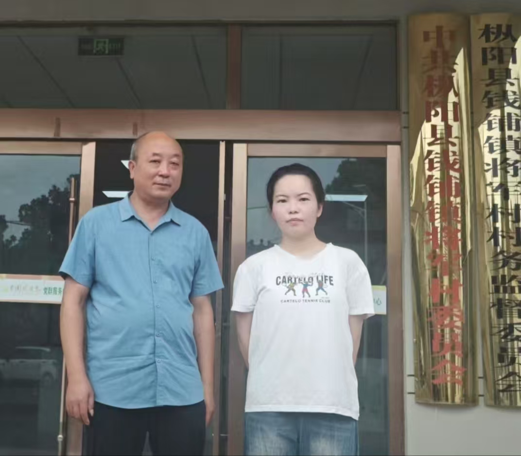 圖為志愿者(其一)與村支書在村支部門口合影。張雯靜 供圖