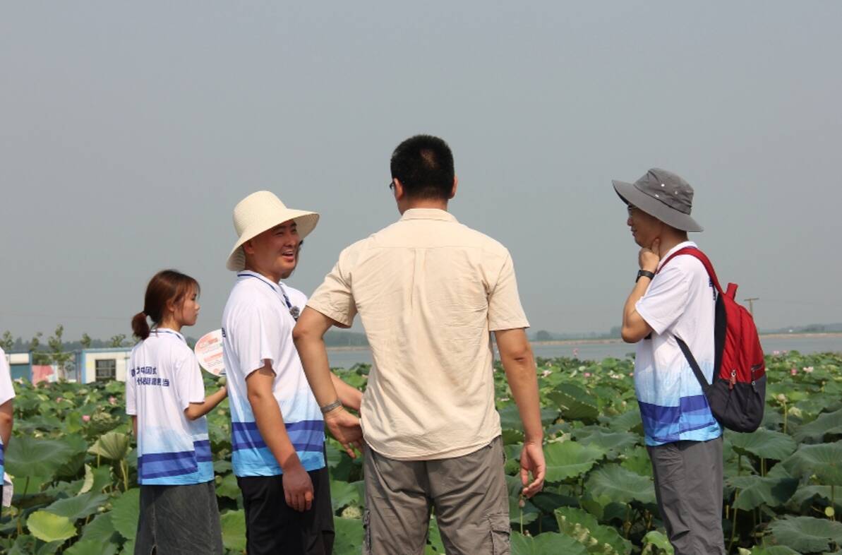 圖為基地負責人為實踐團成員介紹荷塘基本情況。趙雯玥 供圖
