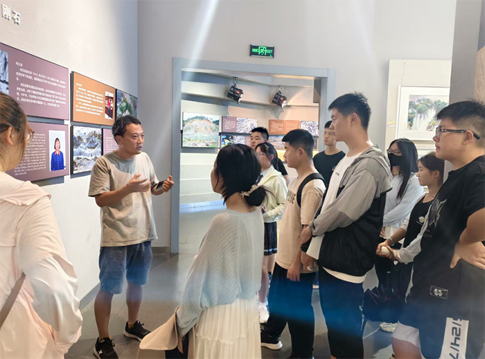 二、參觀天柱山博物館,探尋歷史印記 午餐過后,實踐團隊在楊立輝的組織下參觀了天柱山博物館。博物館內陳列著大量珍貴的歷史文物和豐富的文化資料,生動地展現了天柱山地區從古至今的發展歷程和獨特文化。在楊立輝的引導下,團隊成員們依次參觀了各個展廳,每一件展品都承載著一段歷史,講述著一個故事。隊員們認真聆聽講解,不時發出驚嘆,對天柱山地區深厚的歷史文化底蘊表示由衷的敬佩。在地質文化展廳,隊員們了解到天柱山獨特的地質構造和豐富的自然資源。天柱山作為世界地質公園,其地質遺跡具有極高的科學價值和觀賞價值。隊員們通過觀看地質模型和科普視頻,深入了解了天柱山的形成過程和地質演變,感受到了大自然的神奇魅力。在標本展廳,隊員們被一件件精致的標本深深吸引。從蝴蝶標本到昆蟲標本,轉角又是鳥類標本,有力地向我們展示了天柱山的生物多樣性。