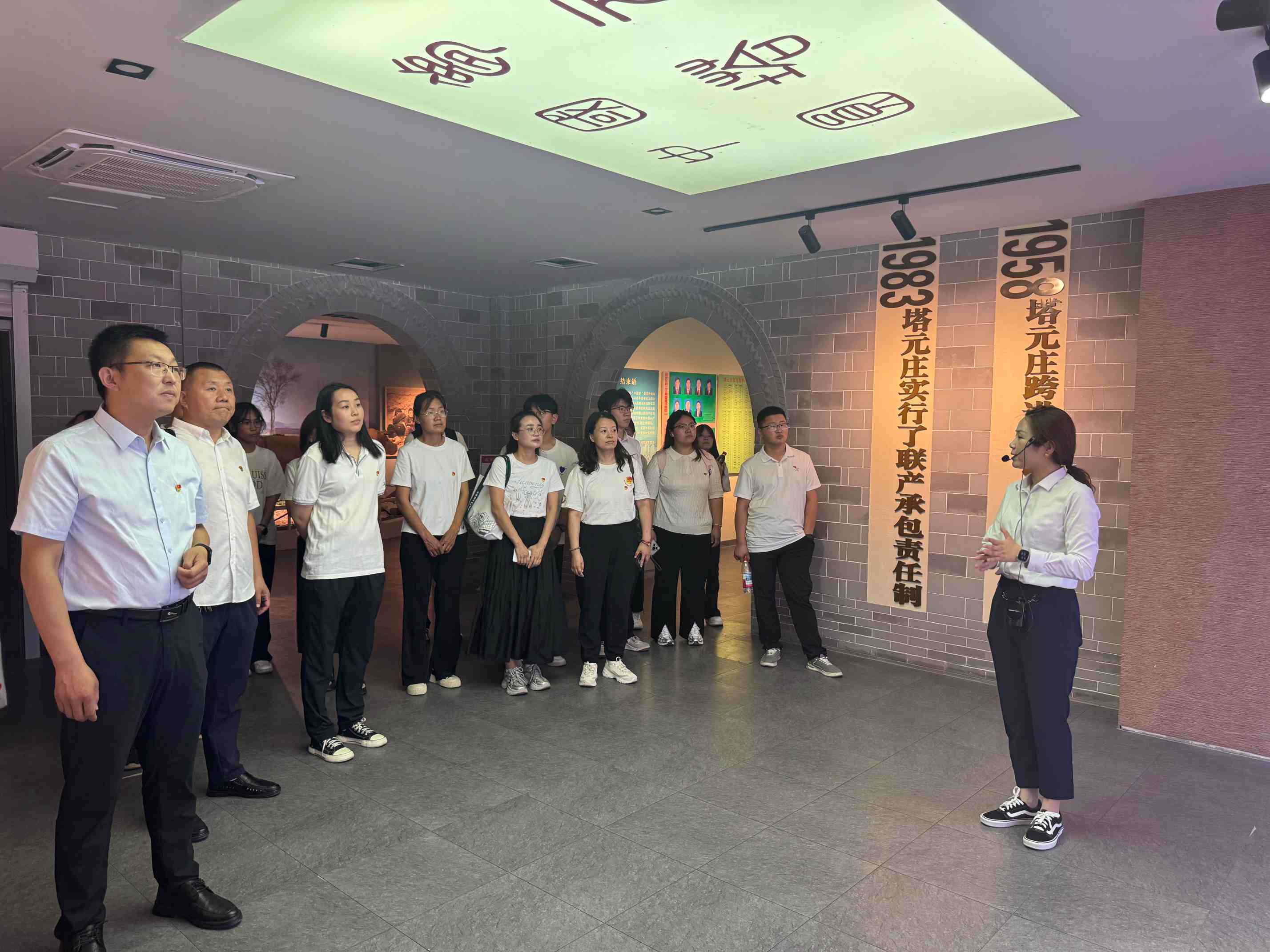 在塔元莊村史館,實踐團成員全面了解塔元莊村堅持以黨建為引領、抓黨建促鄉村振興,通過“村企合作”形成優勢互補、互利多贏格局,解決了農村產業鏈短、資金短缺、管理人才匱乏等難題,在實踐中探索出鄉村振興的新模式。