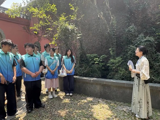 活動當天,同學們懷著對傳統文化的崇敬與好奇踏入家廟。在講師的帶領下,他們首先來到家廟的標志性建筑前。講師從家廟的歷史沿革入手,講述了孔氏南宗家廟在歷史長河中的興衰與傳承,以及它在儒家文化傳播中所占據的重要地位。同學們圍在講師身旁,仔細聆聽,眼神中滿是對知識的渴望,并不時就自己感興趣的問題與講師交流探討。