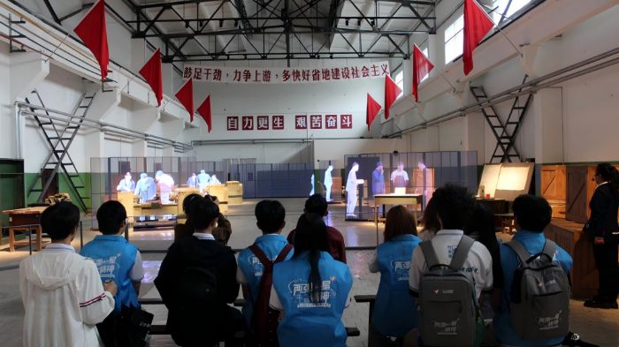 斑駁的墻體、銹跡斑斑的設備基座、保留完好的通風管道,無聲訴說著當年的緊張與忙碌。“這里曾是高度保密的‘核心區’,連家屬都不知道親人具體在做什么。”隨隊的指導老師指著廠房內的一處操作臺介紹,“當年科研人員在這里完成‘兩彈’關鍵部件的精密加工,誤差必須控制在微米級,許多工人師傅靠手工打磨創造了‘中國精度’。”站在舊址前,宣講團成員實地感受了“一不怕苦、二不怕死”的奮斗場景,對“自力更生、艱苦奮斗”的精神內涵有了更深刻的理解。